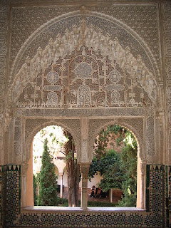 La Alhabra se contituye por la entrada, Mexuar, Palacio de Mexuar, Oratorio, Cuarto Dorado, Patio de los Arrayanes, Torre de Comares, Sala de los Embajadores, Sala de la Barca, Patio de la Reja, Departamentos de Carlos V, Pinador de la Reina, Baños, Patio de los Leones, Sala de los Abencerrajes, Sala de las Dos Hermanas, Sala de los Mozárabes, Sala de los Ajimeces, Mirador de Daraxa, Jardín de Daraxa, Jardines del Partal y Palacio de Carlos V.